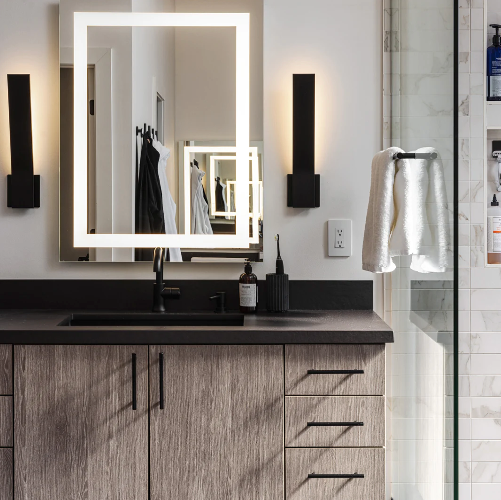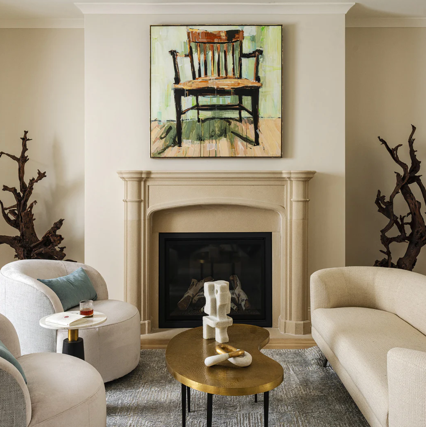 This project features a modern luxury condo with interior design by Buck Wimberly of ULAH Interiors + Design. Buck designed the kitchen, baths, custom fireplace, wall art installations, bespoke dining table, and vanity mirror — along with the interior of the home, with custom furnishings purchased through ULAH Interiors + Design.