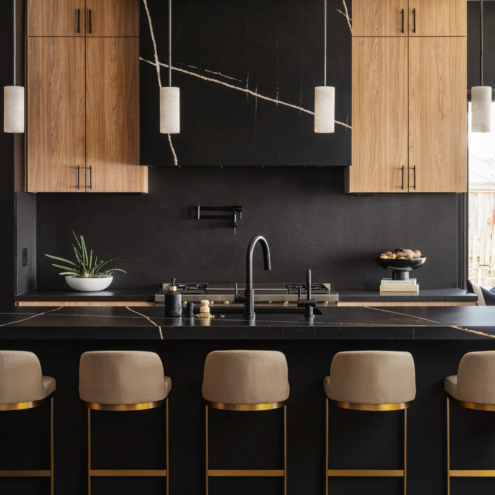 This luxe modern home was built by Chris George Custom Homes, with interior design by Buck Wimberly at ULAH Interiors + Design. We created a moody, casual, modern vibe with some transitional touches to add character and warmth to suit the style of the neighborhood. We used super durable textiles and surfaces to complement the timeless design.